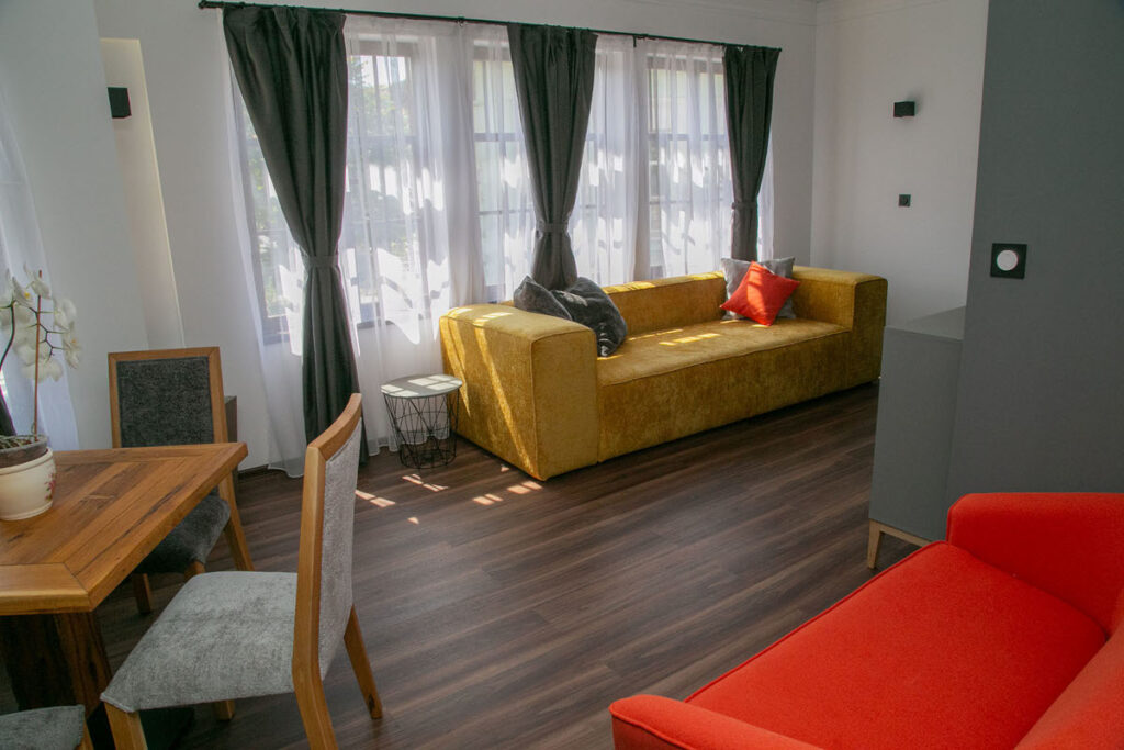 Located in the “Sixth Precinct” – the ideal center of Gabrovo, the complex offers 5 cozy accommodation rooms and 1 apartment, with a total capacity of 15-18 guests. All rooms have free WiFi, air conditioning, smart TV, bathroom with shower, hairdryer and toiletries.