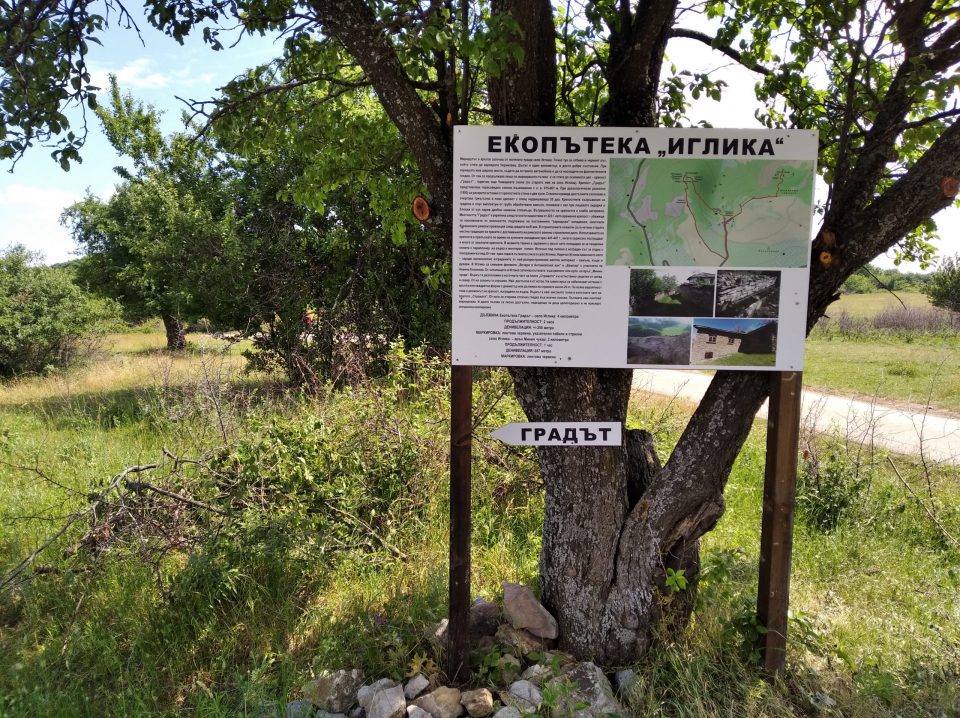 Екопътеката до село Иглика е кръгова и започва от поляна преди селото. Още от самото начало на маршрута започват да се откриват чудесни пасторални пейзажи към Балкана и Предбалкана. Тръгва се по добър черен път, който преминава непосредствено над кариерата „Чириковец“. Продължава се по маркирана пътека и се стига до останки от крепостта „Градът”, наричана още Чомашката скала (по старото име на село Иглика) като се излиза на широко място над скали.